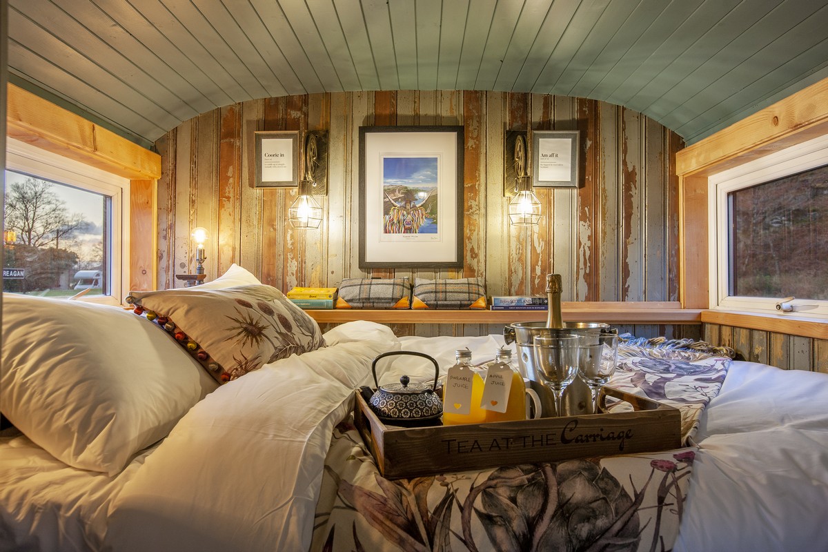 Heritage meets contemporary luxury in this former GWR Train Carriage. Now beautifully restored and converted with clever nods to its industrial roots, this romantic carriage sits in an enviable position alongside an old railway station midway between Oban and Fort William.